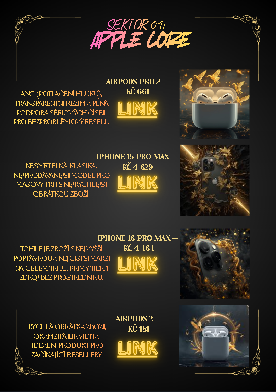 Získejte exkluzivní přístup k ověřeným dodavatům elektroniky. Apple, Samsung, Dyson, JBL a desítky dalších — bez prostředníků, za velkoobchodní ceny.